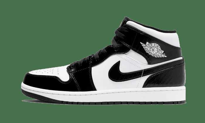 ה-אייר ג’ורדן 1 מיד קרבון מחווה את תצוגת אמצע העונה של ה-NBA עם מבנה מוגבה. עם שילוב קלאסי של שחור ולבן, החלק העליון של הנעל כולל בסיס עור שמכוסה על ידי עור לקה, עם הדפס דמוי סיבי קרבון שמופיע על הנעל, העקב והצווארון. מתחת לכף הרגל, הציוד הדו-גוני כולל סוליית ביניים Air עבור ריפוד וסוליית גומי.