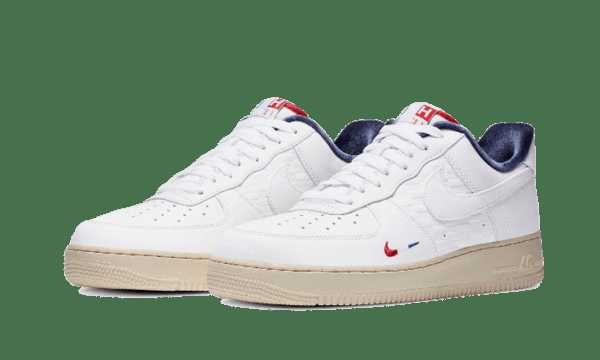 For this Nike Air Force 1 Low Kith Paris , Ronnie Fleg offers us a high quality white leather upper as well as a mini swoosh , insole and tongue in the color of France for the " French touch " side.