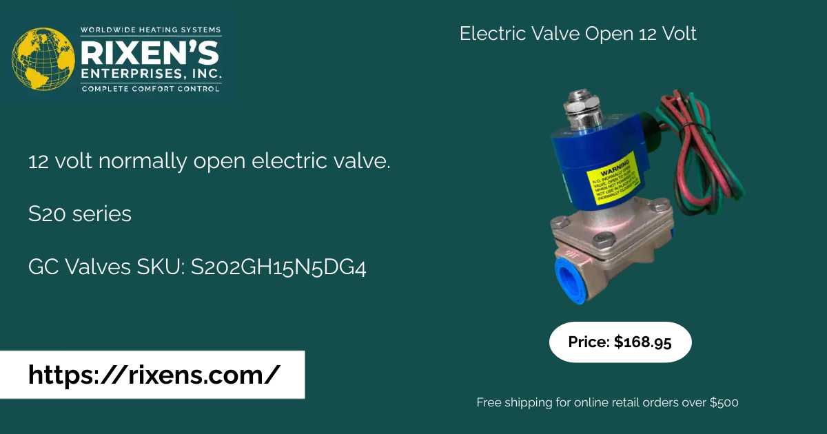 12 volt normally open electric valve. S20 series GC Valves SKU: S202GH15N5DG4