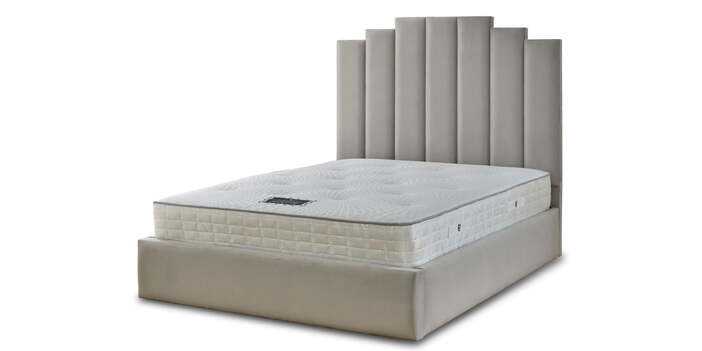 The Brooklyn bed is panelled and finished in a light grey tone, perfect for any glamorous theme. Modern art-deco-inspired panels flow seamlessly from the headboard to the base of the bed. This stunning bed looks and feels truly opulent, with specially designed sprung slats to flex with your body's movement you can ensue.
