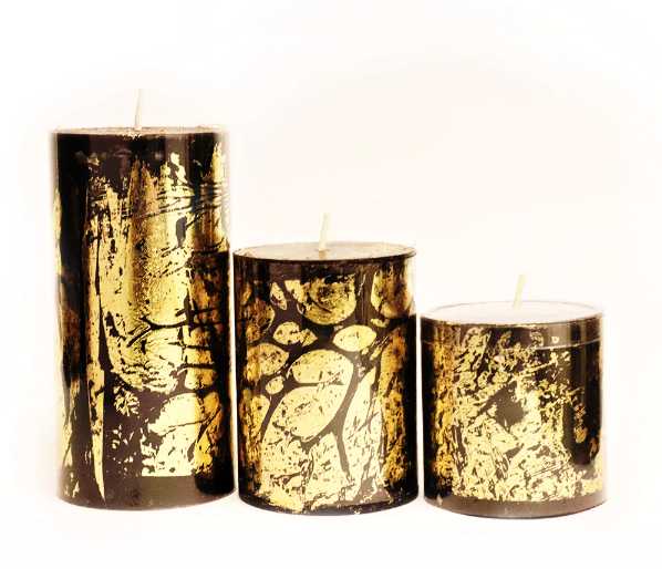 Black Pillar Candles with Gold Finish
