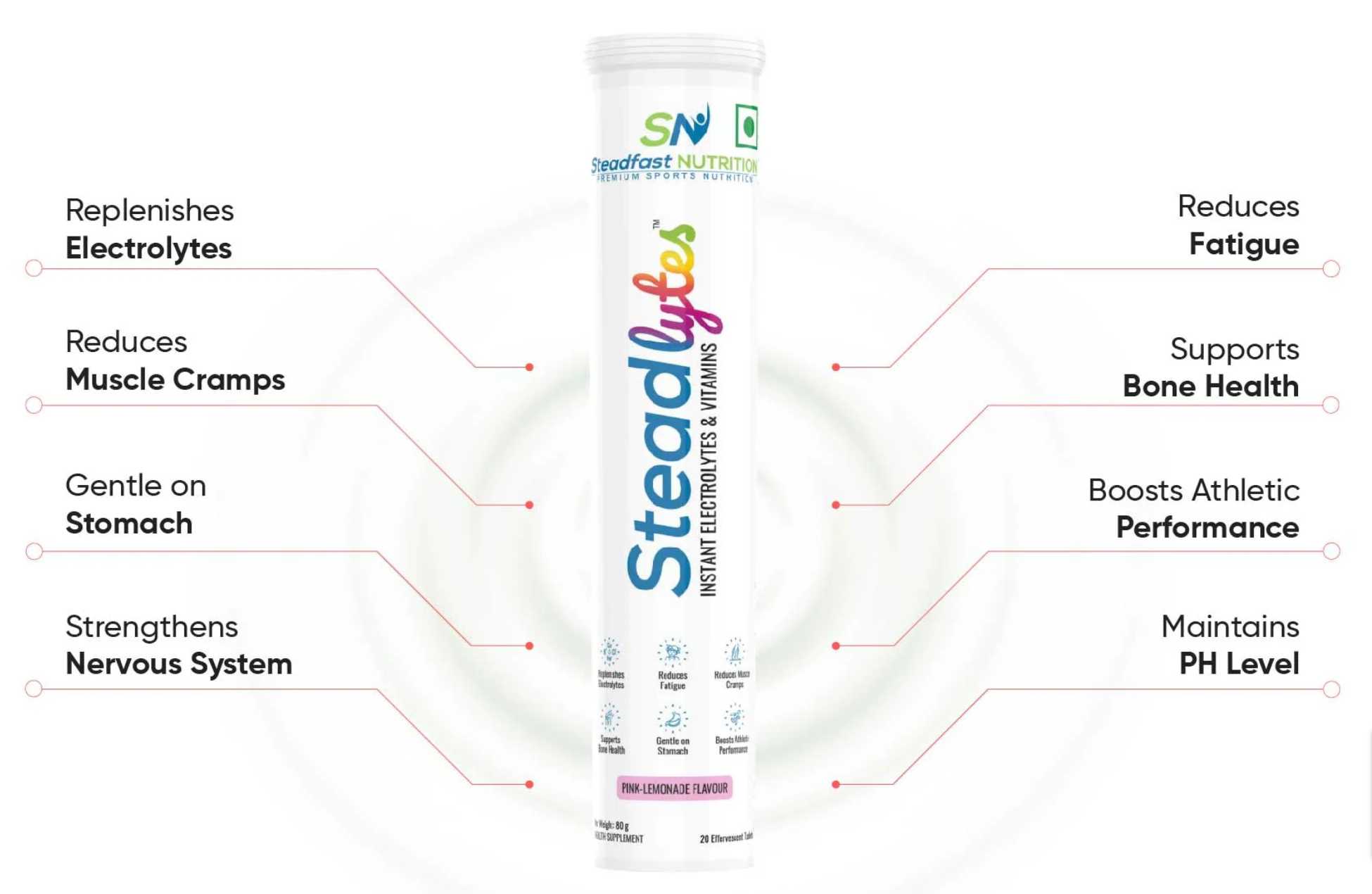 Introducing Steadfast Electrolyte Drinks, a revitalizing solution for replenishing your body's essential minerals. Packed with a perfect balance of sodium, potassium, and magnesium, these refreshing beverages are designed to combat dehydration and restore electrolyte balance swiftly. Crafted with natural flavors and no added sugars, Steadfast Electrolyte Drinks offer a delicious, guilt-free way to rehydrate after workouts, on busy days, or even during hot weather. With its convenient packaging and on-the-go portability, stay energized and refreshed wherever you are. Elevate your hydration game with Steadfast Electrolyte Drinks and embrace a steadfast, active lifestyle today.