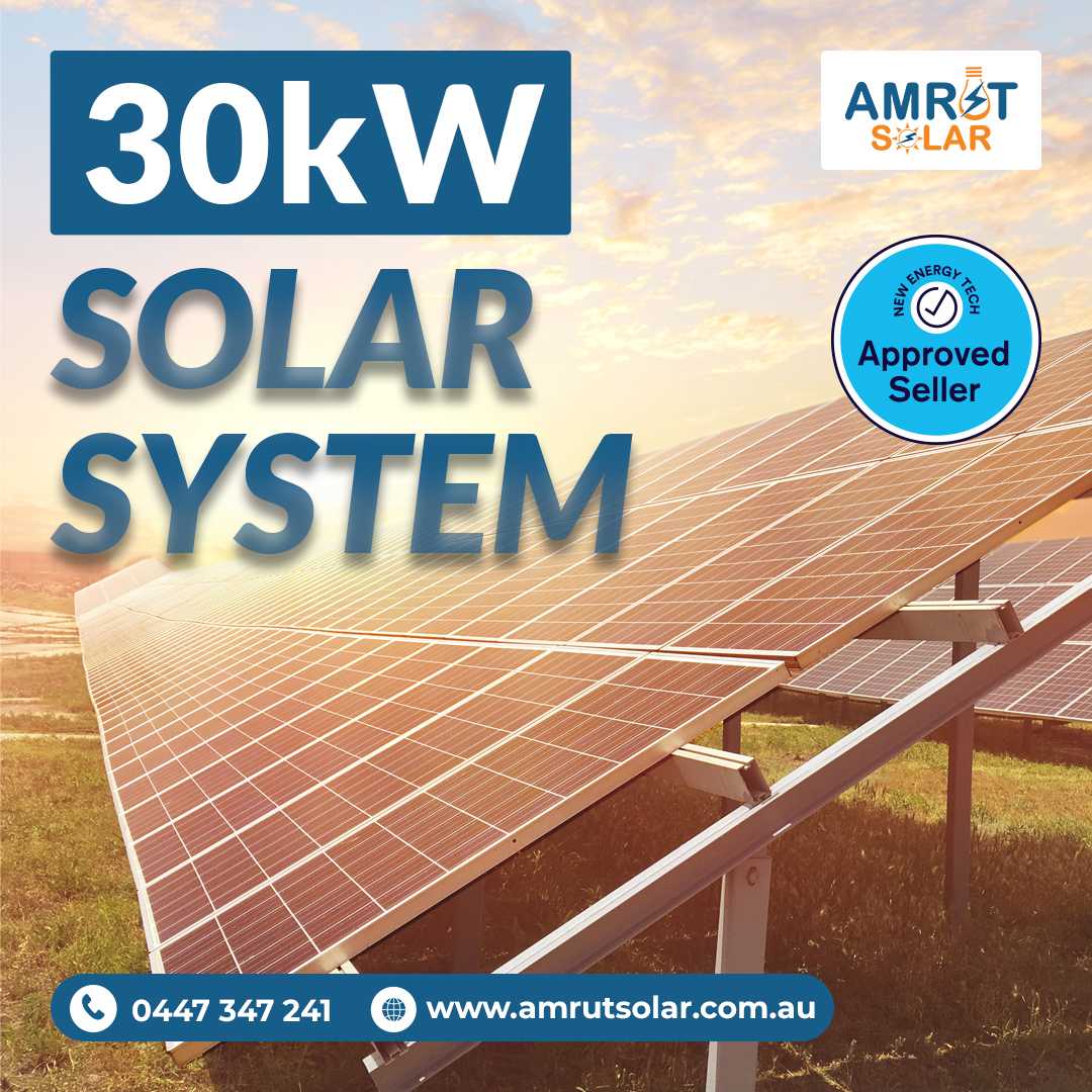 Amrut Solar provides the advanced 30kW solar system, ideal for Melbourne's expansive commercial properties looking to lower their energy bills and boost sustainability drastically. With this high-performance solution, businesses can achieve unparalleled energy efficiency and savings. Trust Amrut Solar to power your enterprise with clean, renewable energy.